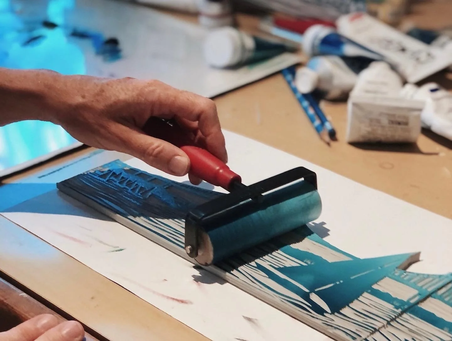 The cities and towns of Rhode Island greatly inspire my art. The places where I live, visit and work are featured in my series of linoleum prints entitled Unfold ink.